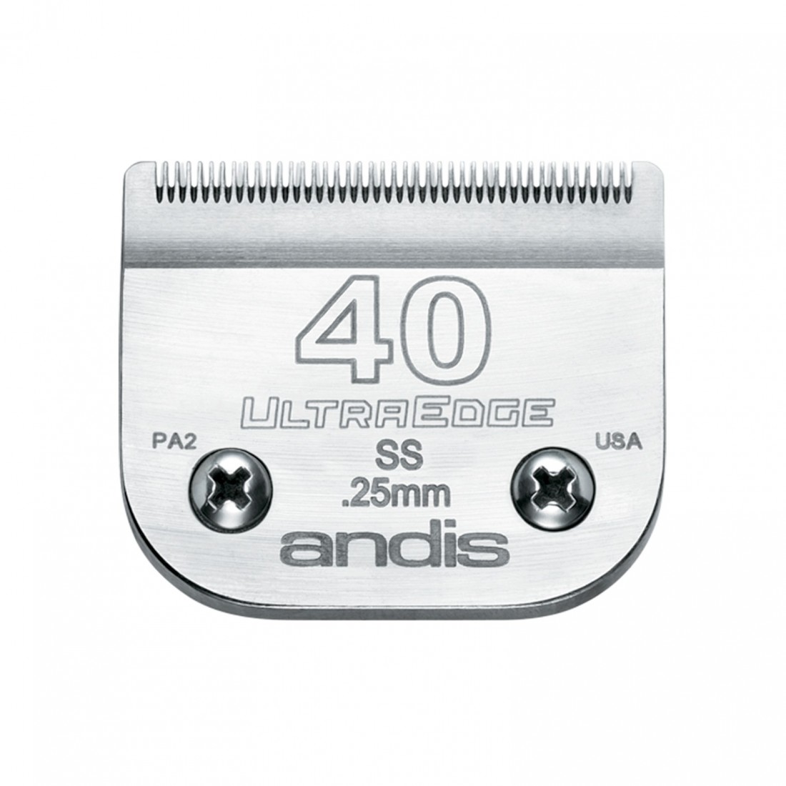 TESTINA ANDIS Lama compatibile con tosatrice Ultraedge Andis e tosatrice Oster Realizzata in acciaio al carbonio di alta qualità secondo standard elevati Grazie alla speciale finitura cromata che inibisce la corrosione ed un esclusivo processo di tempra le lame rimangono più affilate più a lungo SIZE: 40SS (0,25 mm)