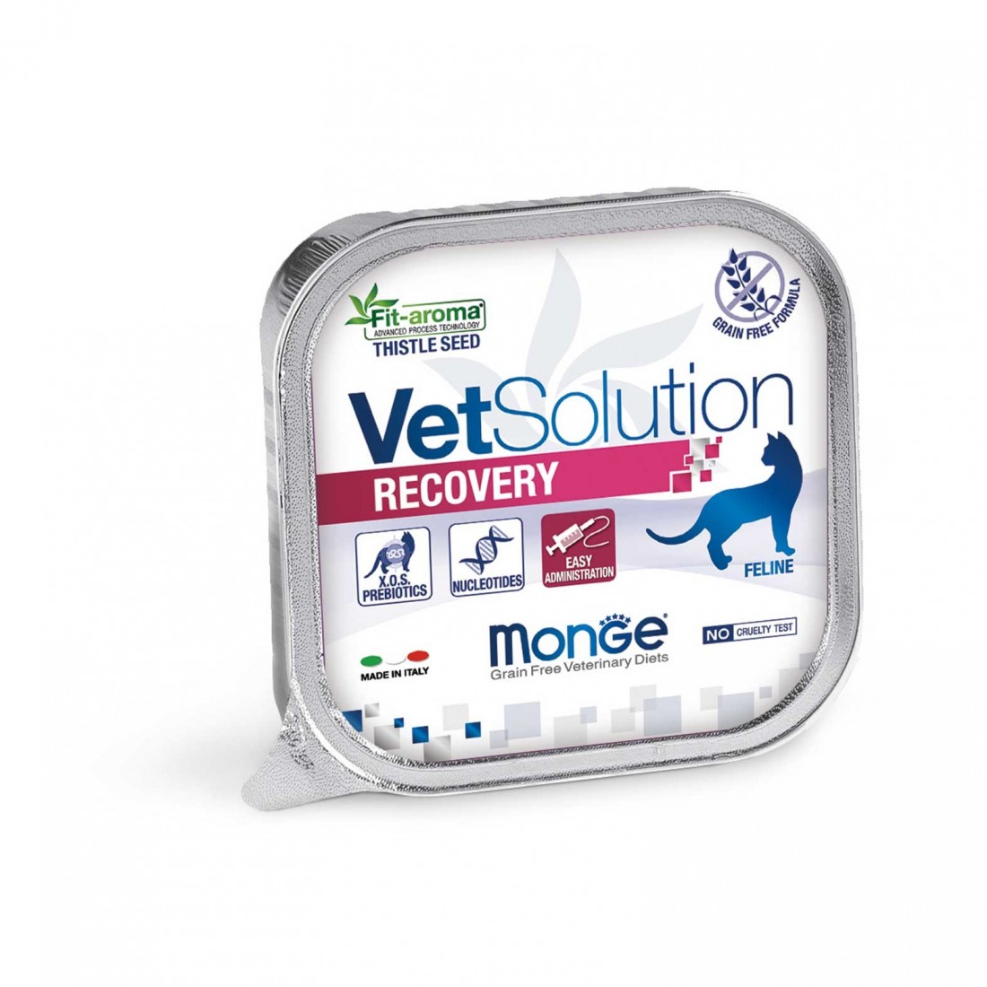 MONGE VETSOLUTION RECOVERY FELINE è un alimento dietetico completo per gatti formulato per promuovere la ripresa nutrizionale durante la convalescenza.